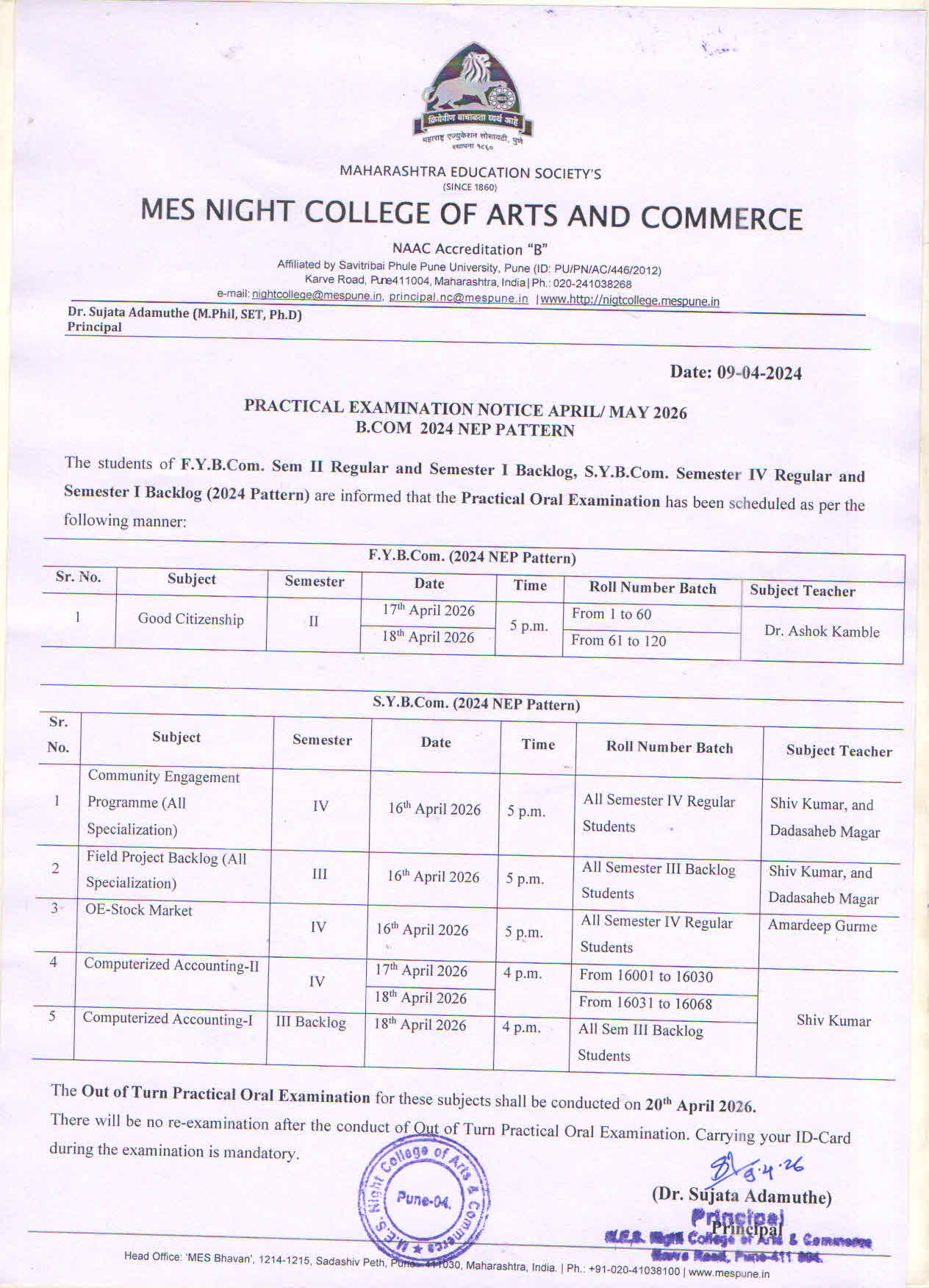 Notice Practical Exam Apr-Mar 2026 B.Com 2024 patternBy Web Admin / April 10, 2026 Notice Practical Exam Apr-Mar 2026 B.Com 2024 pattern